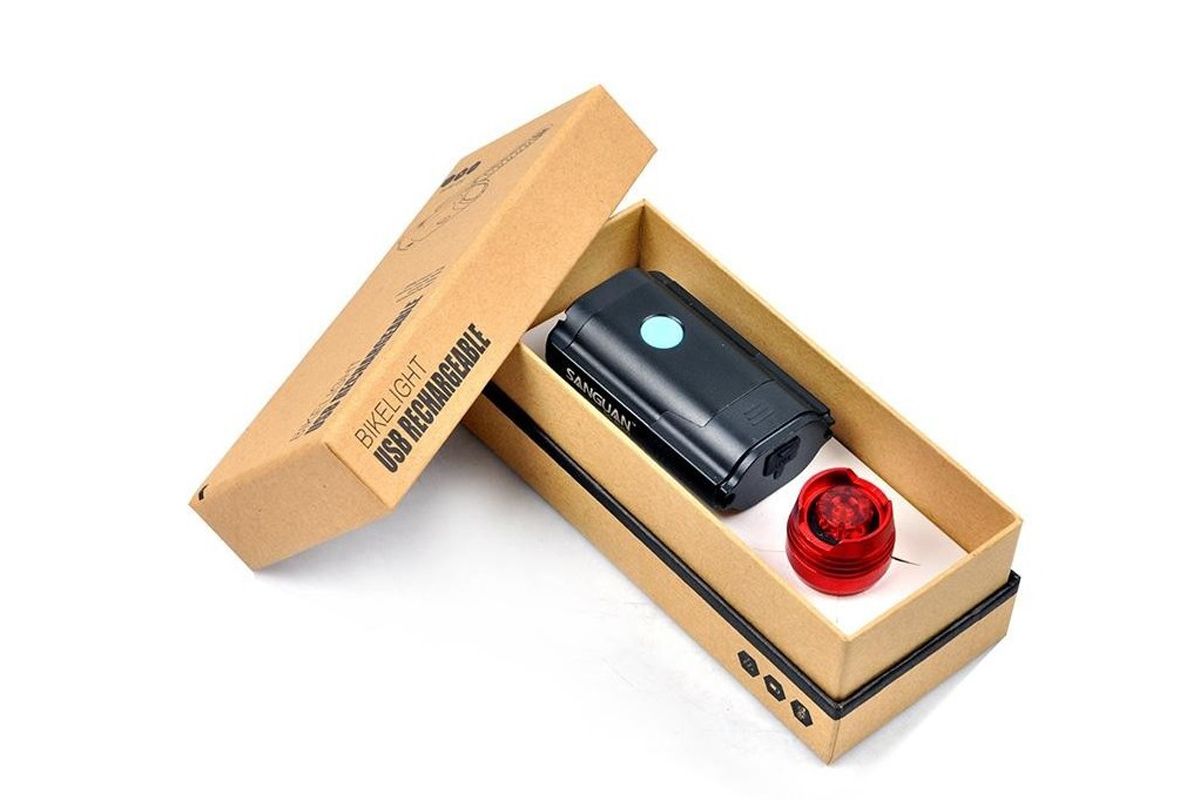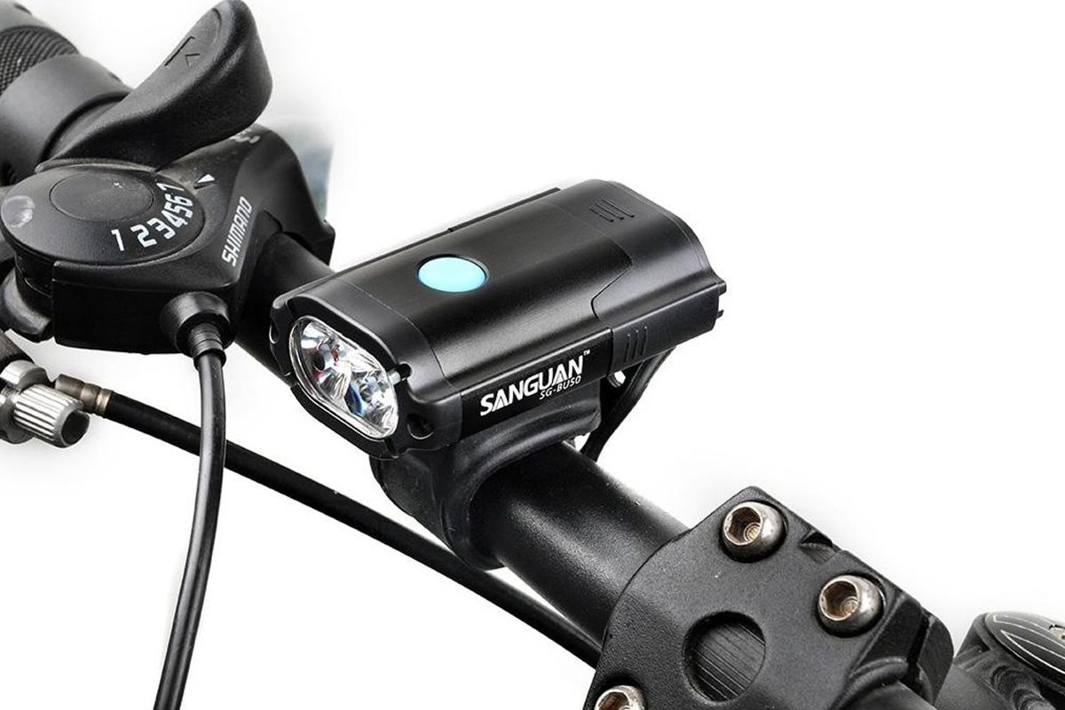 Велосипедный фонарь SANGUAN SG-BU50 создаёт световой поток 500лм. 2 светодиода хорошо освещают дорогу перед велосипедом на расстоянии до 30 метров, до 10 метров - яркое световое пятно, которое выделяется даже при свете уличного освещения. 4 режима работы, вес 86 грамм. Индикация разряда аккумулятора. Алюминиевый корпус. Влагоустойчивый. В комплекте поставки прилагается задний фонарь красного цвета (15лм) с тремя режимами свечения, а также USB-кабель, с помощью которого можно зарядить, от компьютера, оба фонаря. Время зарядки встроенного литиевого аккумулятора фонаря SG-BU50 (1100mAh) - 2 часа.